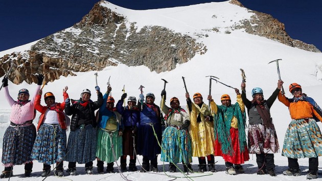 Now imagine eleven indigenous Bolivian women with helmets, polarized goggles, hiking material and crampons attached to shoes. A sight that is definitely not too common among Aymara women. Aged 20 to 50 years old, these “cholitas” climbed the 6,099-meter high Huayna Potosí earlier in January 2016.